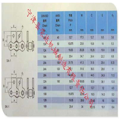 同一品種的鏈條按節(jié)距、排數(shù)、鏈條寬度以及極限拉伸載荷的不同劃分規(guī)格。