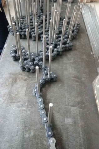 加長(zhǎng)銷軸鏈條:一種把鏈條的銷軸加長(zhǎng)的鏈條,可以單側(cè)加長(zhǎng),雙側(cè)加長(zhǎng),加長(zhǎng)銷軸上打孔,隔節(jié)加長(zhǎng)。我們做的加長(zhǎng)銷軸鏈條有A B系列加長(zhǎng)銷軸鏈條和雙節(jié)距直板大滾子輸送鏈條。加長(zhǎng)銷軸鏈條就是把一般的鏈條的銷軸加長(zhǎng),用來固定其他附件。