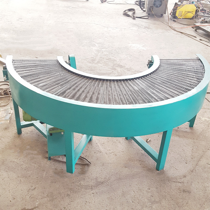 輸送機的規(guī)格是180度轉(zhuǎn)彎, 速度可調(diào) 變頻調(diào)速 高度700毫米。 轉(zhuǎn)彎網(wǎng)帶規(guī)格有效尺寸400毫米 絲是不銹鋼201材質(zhì) 絲徑2毫米 穿桿8毫米碳鋼材質(zhì) 絲孔10毫米 內(nèi)側(cè)鏈條節(jié)距27毫米 外側(cè)鏈條節(jié)距53毫米