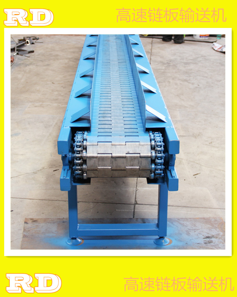 9, 無聲高速鏈板輸送機具備了鏈條輸送機的高速,也具備了鏈板輸送機的穩(wěn)定性,也具備了鏈板的無縫隙不卡料。