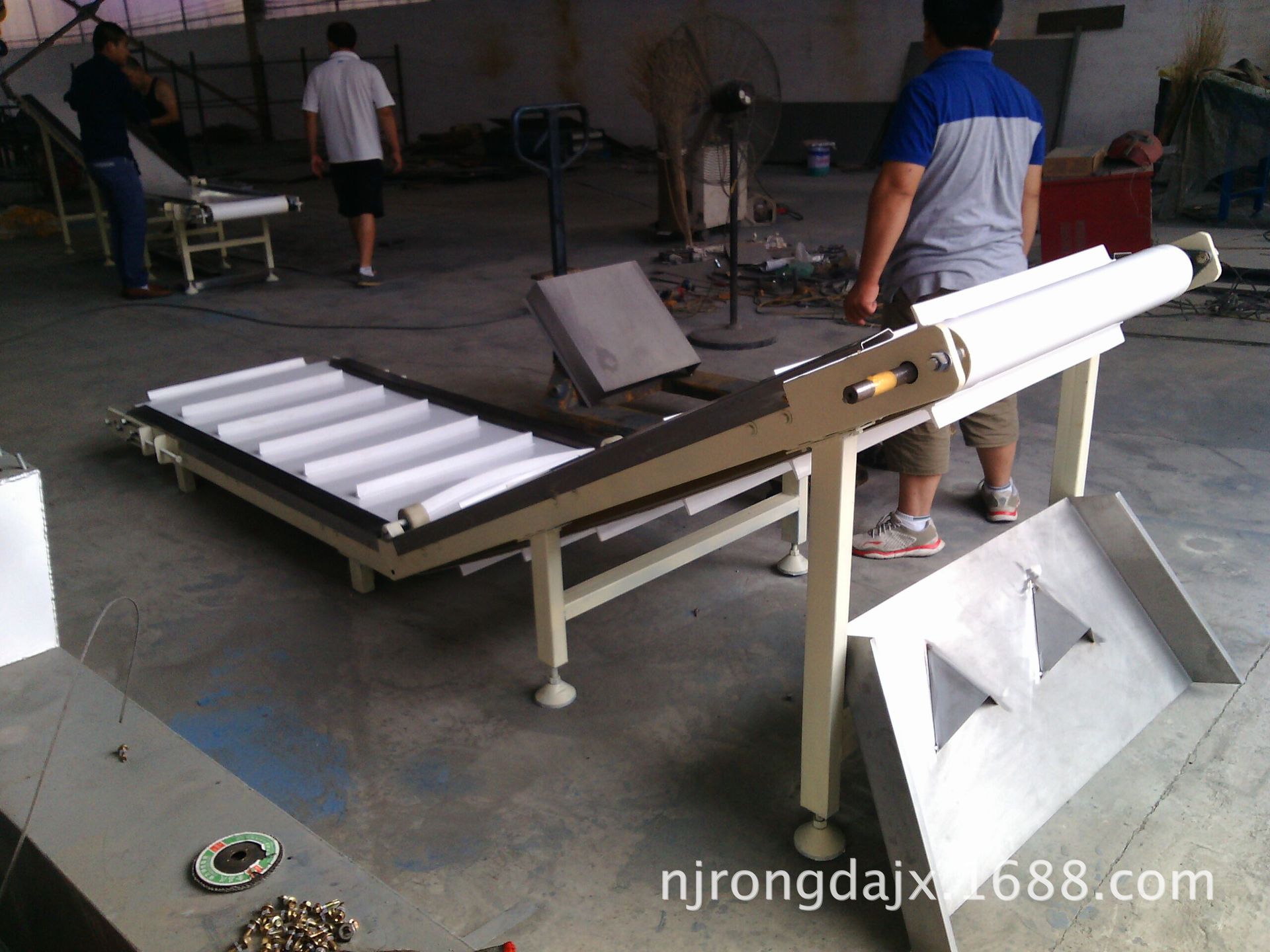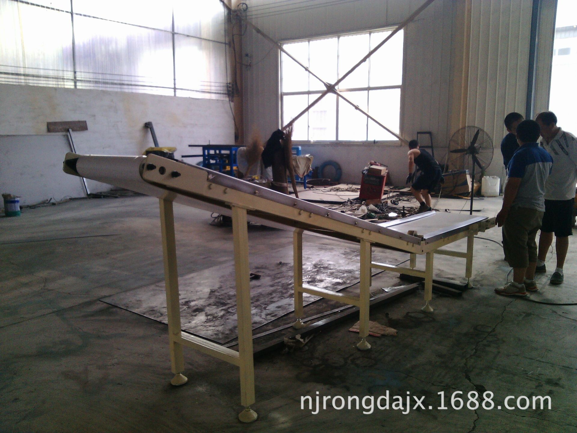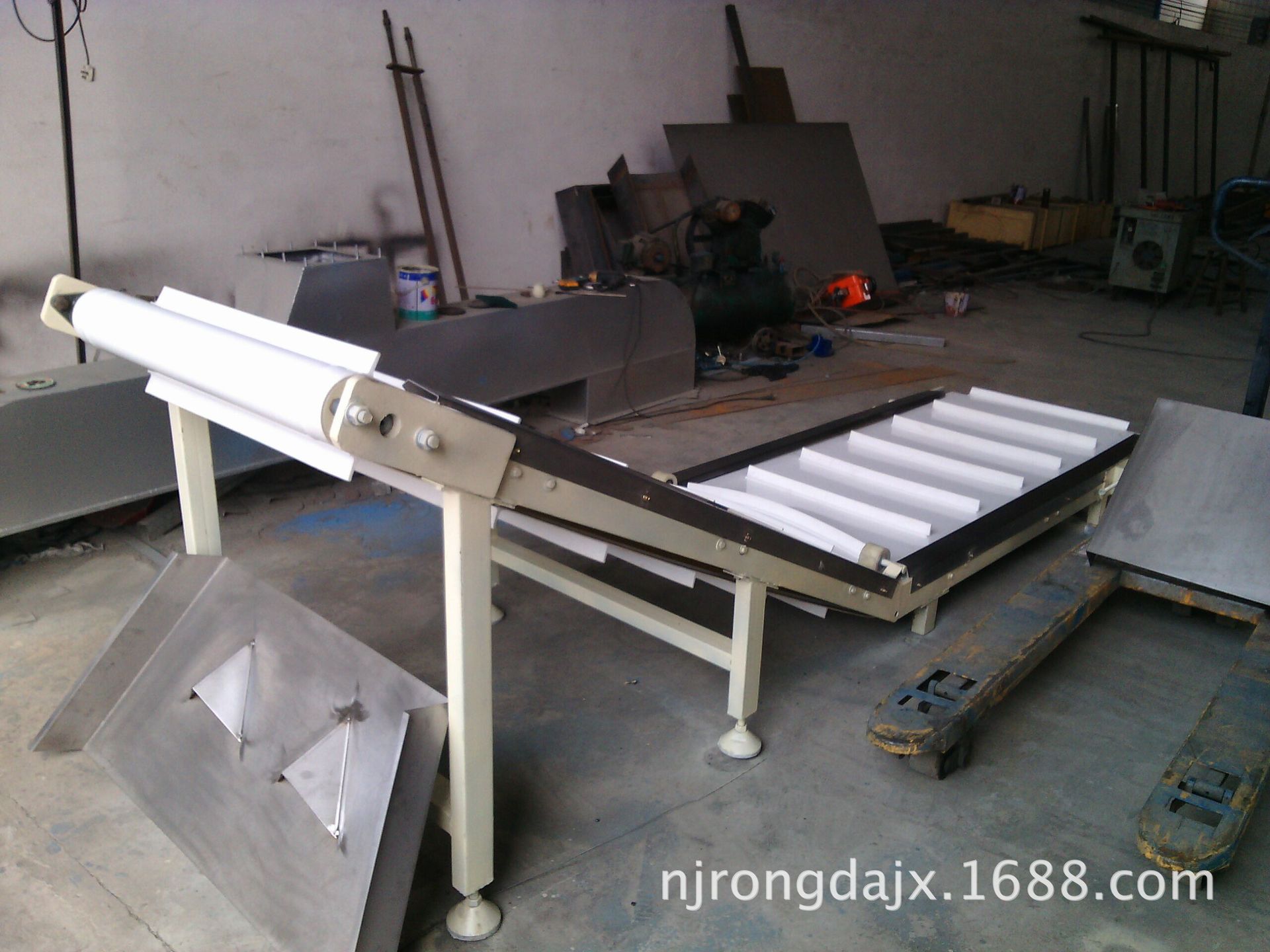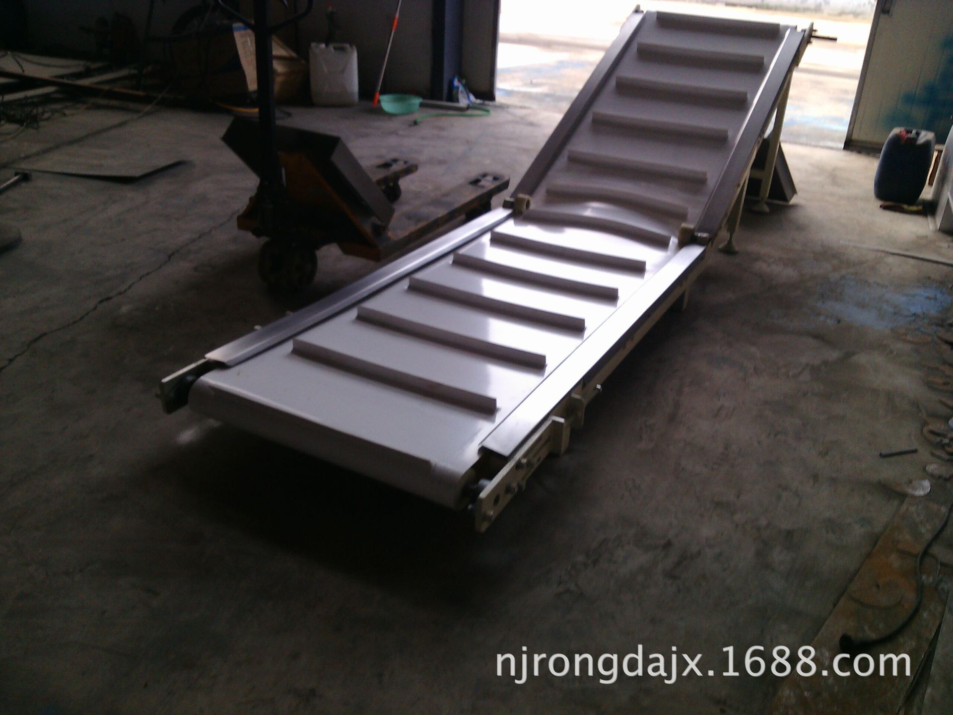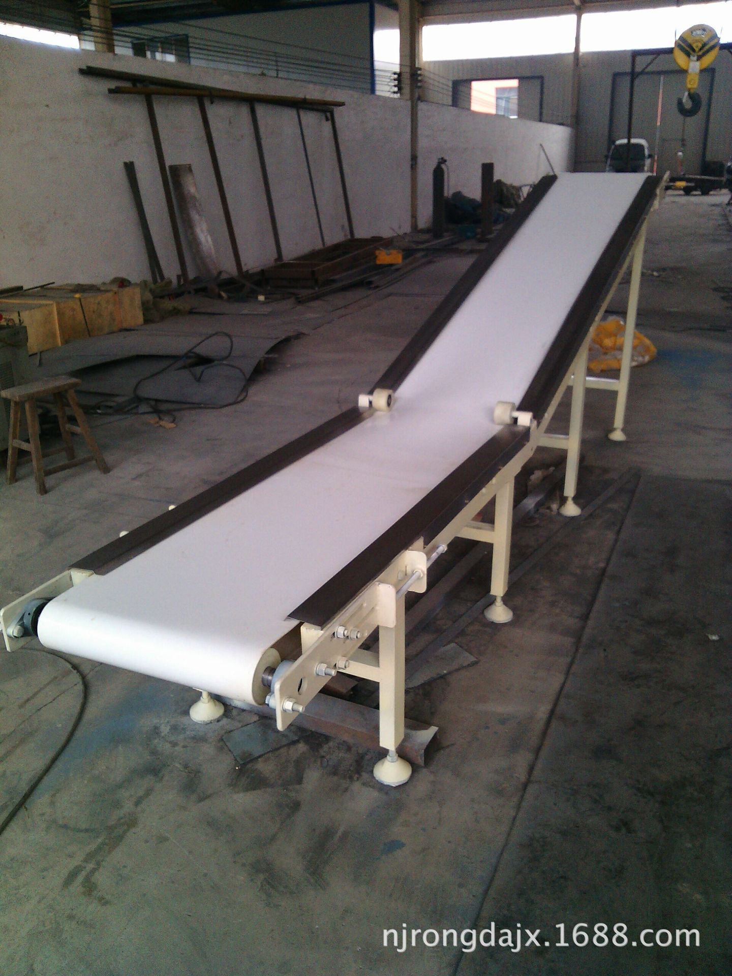 另一臺(tái)水平長(zhǎng)度1.6米,提升機(jī)段長(zhǎng)度2.5米,皮帶有效寬度0.5米,電機(jī)是定速,5500元/臺(tái)