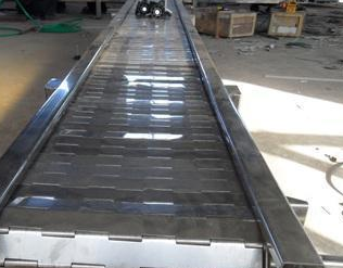 6、運(yùn)行平穩(wěn)可靠;鏈板輸送機(jī):又叫鏈板傳送機(jī),鏈板線(xiàn),鏈板傳送帶。是一種利用循環(huán)往復(fù)的鏈條作為牽引動(dòng)力,以金屬板作為輸送承載體的一種輸送機(jī)械設(shè)備。國(guó)內(nèi)市場(chǎng)上有兩種鏈板輸送機(jī),一種是用鏈條,支軸和金屬板組成的輸送鏈板做成的輸送機(jī);一種是用帶彎板的鏈條和金屬板組成的金屬板輸送帶做成的鏈板輸送機(jī),另一種是平頂鏈鏈板輸送機(jī)。