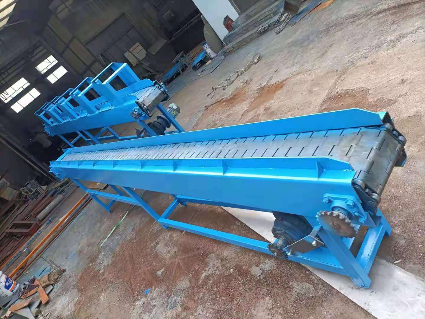 1,如果輸送機是提升機,是傾斜爬坡輸送機,輸送的時候帶角度提升輸送,盡量在輸送帶上加上橫擋板,在輸送帶上加上防滑隔板。