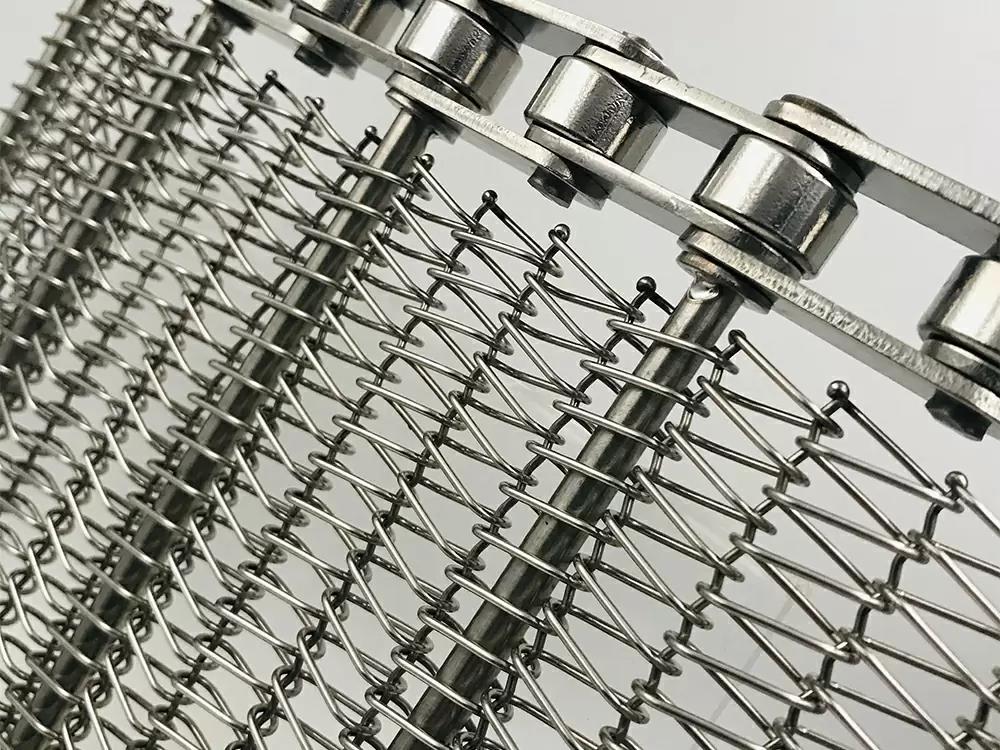 鏈網(wǎng)是由網(wǎng)帶,支軸,鏈條組裝加工生產(chǎn), 依據(jù)搬送工件的種類,形狀,尺寸,重量而選定網(wǎng)帶樣式,線徑,螺距和節(jié)距。依據(jù)搬送及網(wǎng)帶的寬度,長度,運(yùn)行速度,機(jī)械配置選擇鏈條型號和支軸規(guī)格。溫度范圍零下 55 攝氏度到1150 攝氏度量,鏈條網(wǎng)設(shè)計(jì)可以在網(wǎng)帶邊緣加側(cè)擋板和網(wǎng)面中間加裝橫擋板.