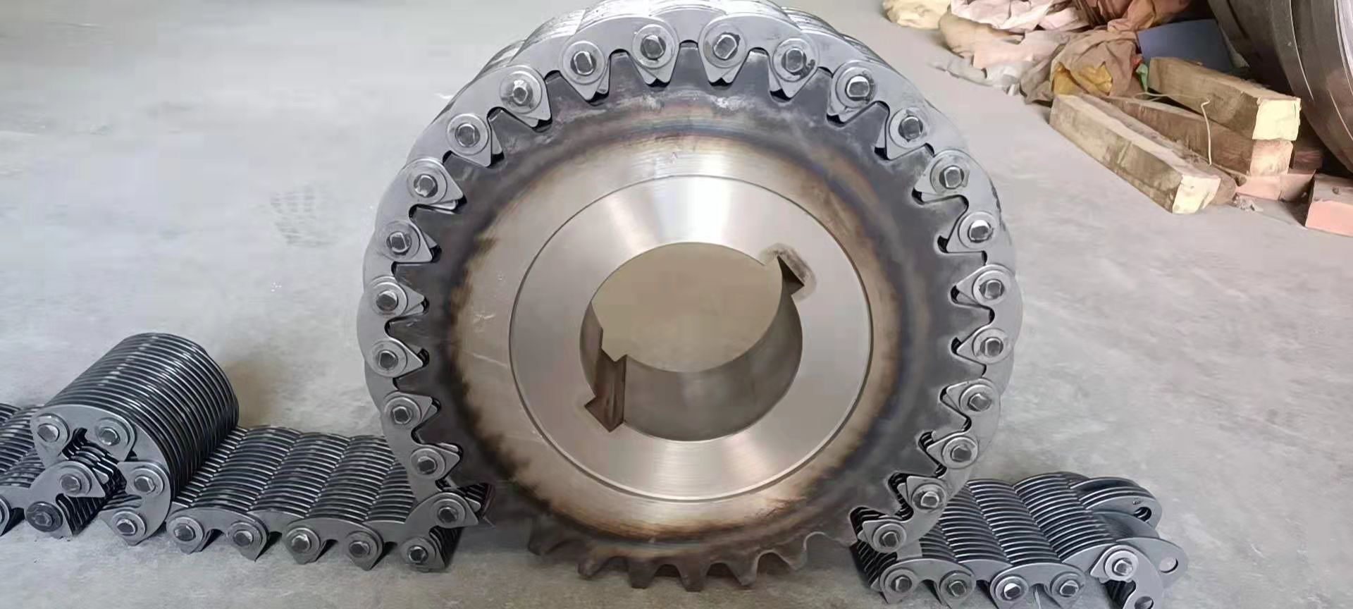 無(wú)聲鏈 齒形鏈輪  無(wú)聲鏈:也叫齒形鏈條,采用無(wú)聲齒形鏈輪帶動(dòng)運(yùn)轉(zhuǎn)傳動(dòng)。寧津縣榮達(dá)機(jī)械制造有限責(zé)任公司定做各種無(wú)聲齒形鏈條,無(wú)聲齒形鏈輪。我們根據(jù)客戶自己的情況,客戶選型成功,我們根據(jù)客戶的數(shù)據(jù)非標(biāo)定做各種齒形鏈條和無(wú)聲齒形鏈輪。齒形鏈條節(jié)距4.7625,6.35  9.525  12.7  15.875  19.05  25.4  31.75  38.1毫米的鏈條都能做,無(wú)聲齒形鏈輪根據(jù)客戶的齒數(shù)和外徑,內(nèi)孔,鍵槽定做。無(wú)聲齒形鏈條的獨(dú)特優(yōu)點(diǎn):高速,無(wú)噪音,高承載傳動(dòng)能力,轉(zhuǎn)矩大等等優(yōu)點(diǎn),逐漸取代精密滾子鏈條和同步帶。