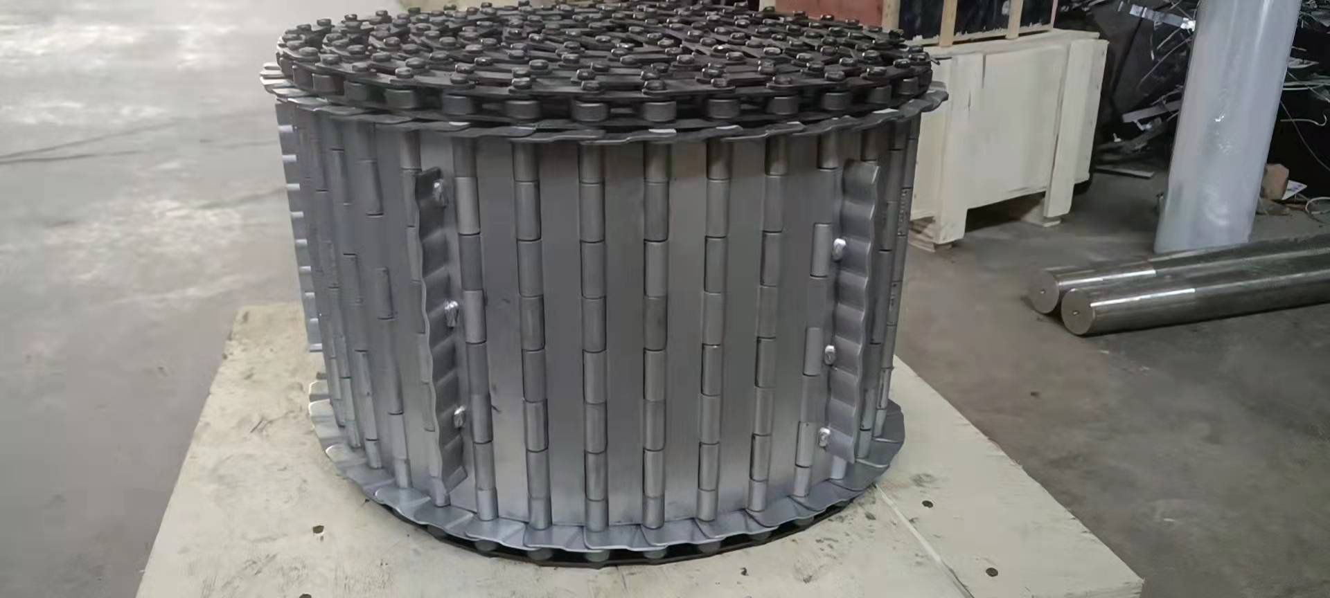 鏈板輸送帶非常堅(jiān)固,由不銹鋼鏈條驅(qū)動(dòng),采用不銹鋼板材生產(chǎn),適合用于輸送細(xì)小的高密度物件,輸送過(guò)程中運(yùn)轉(zhuǎn)平穩(wěn),安裝更換方便,使用壽命較長(zhǎng)。用于中等和大負(fù)荷輸送。鋼板彎曲形成合葉,使用支軸將合葉和鏈條串在一起。兩端的鏈條可以使用開(kāi)口銷或者墊圈來(lái)固定,使用開(kāi)口銷方便拆卸,維護(hù)方便。