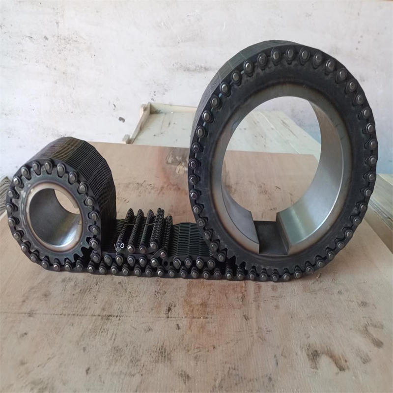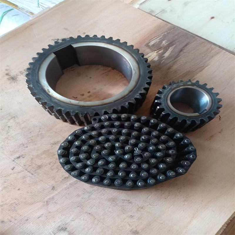 無聲鏈 齒形鏈輪 無聲鏈:也叫齒形鏈條,采用無聲齒形鏈輪帶動運轉(zhuǎn)傳動。寧津縣榮發(fā)齒輪廠定做各種無聲齒形鏈條,無聲齒形鏈輪。我們根據(jù)客戶自己的情況,客戶選型成功,我們根據(jù)客戶的數(shù)據(jù)非標定做各種齒形鏈條和無聲齒形鏈輪。齒形鏈條節(jié)距4.7625,6.35 9.525 12.7 15.875 19.05 25.4 31.75 38.1毫米的鏈條都能做,無聲齒形鏈輪根據(jù)客戶的齒數(shù)和外徑,內(nèi)孔,鍵槽定做。無聲齒形鏈條的獨特優(yōu)點:高速,無噪音,高承載傳動能力,轉(zhuǎn)矩大等等優(yōu)點,逐漸取代精密滾子鏈條和同步帶。