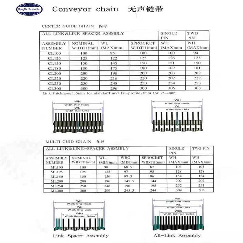 1.無聲齒形鏈帶:一種金屬輸送帶,采用鏈條片和銷軸于墊圈做成的輸送用傳送帶,外形寬度非標(biāo)定做也有好多規(guī)格的現(xiàn)貨,鏈帶是用在玻璃廠輸送玻璃瓶罐器皿日用玻璃器皿的,也有的時(shí)候用在其他的輸送機(jī)械上,用來輸送其他產(chǎn)品,無聲齒形鏈帶的優(yōu)點(diǎn)就是平整,輸送面平穩(wěn),輸送高腳杯,不會倒瓶,無聲齒形鏈帶用來輸送高溫玻璃制品,用于玻璃機(jī)械行列式制瓶機(jī)上,橫向輸瓶機(jī),我們現(xiàn)在還研發(fā)了轉(zhuǎn)彎的拐彎的無聲齒形鏈帶,用于縱向拐彎橫向結(jié)合的輸送機(jī)上。無聲齒形鏈帶材質(zhì)有碳鋼的 錳鋼的 合金鋼的 ,節(jié)距有12.7毫米 25.4毫米 單軸的和雙軸的,無齒形鏈帶從外形看有內(nèi)導(dǎo)向和外導(dǎo)向,無聲齒形鏈帶有帶保護(hù)帽的和不帶保護(hù)帽的,無聲齒形鏈帶有帶尖的和不帶尖的。寬度125毫米 150毫米 200毫米 300毫米 常年有現(xiàn)貨 當(dāng)天下單當(dāng)天發(fā)貨 配套的無聲齒形鏈輪有現(xiàn)貨 英文名稱Silent tooth chain ,顏色有發(fā)黑的有本色的。常規(guī)的是5米一件 五米一木箱 ,用于輸送機(jī)上一般是每分鐘15米左右